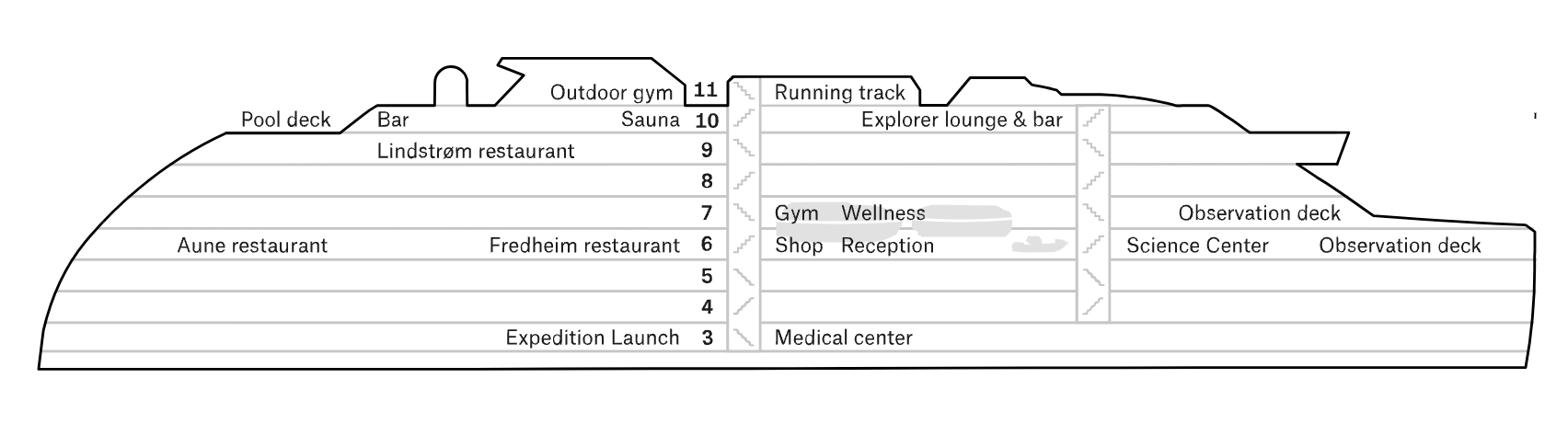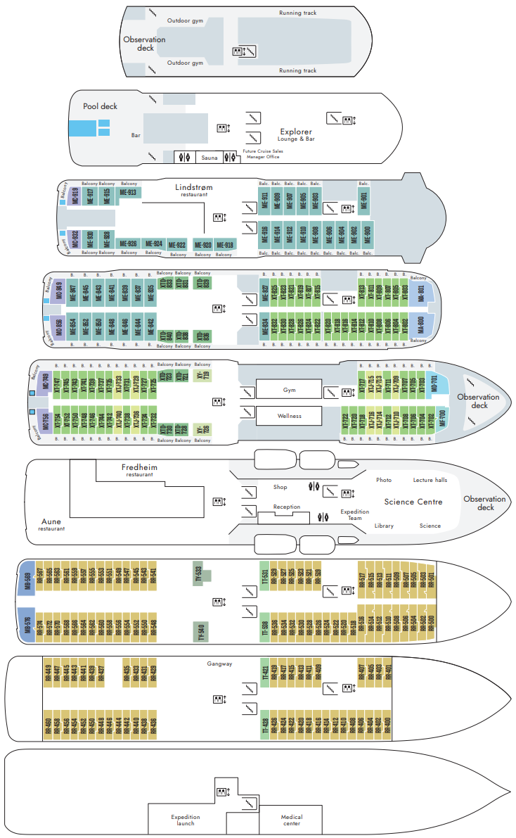 Själva kärnan i upplevelsen ombord och utrustat med toppmodern teknik och högteknologiska prylar som pekskärmar och vetenskaplig utrustning. Det är här som gäster och personal/besättning träffas, umgås och skaffar sig en djupare förståelse för områdena vi utforskar. Den flexibla lokalen har föreläsningsplatser, ett litet bibliotek och specialutrymmen för kurser i fotografi, biologi och mycket mer. Det är också här du hittar HX handplockade expeditionsteam.