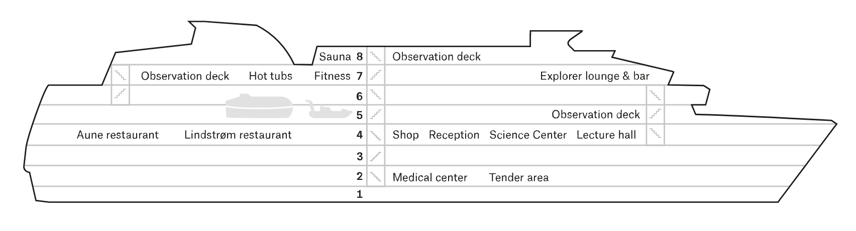 Ombord skapar HX duktiga kockar spännande menyer med hjälp av ingredienser från de platser ni färdas genom. Huvudrestaurangen Aune, har en naturlig prägel och bjuder på sociala och informella umgängesplatser. Här serveras frukost, lunch och middag som hämtar inspiration från de områden vi utforskar. Fine dining restaurangen Lindstrøm, uppkallad efter de norska polarhjältarnas favoritkock Adolf Lindstrøm, ingår för svitgäster. Gäster som inte bor i svit kan njuta av frukost, lunch och middag i Lindstrøm mot en extra kostnad. Den bästa platsen att avnjuta en perfekt cocktail är Explorer Lounge & Bar i fartygets för. Luta dig tillbaka, samtala med dina medresenärer och ta in de vackra vyerna utanför panoramafönstren.