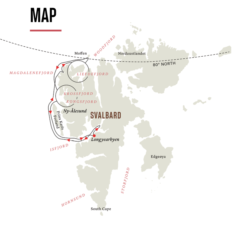 Följ med till världens topp – vi seglar i polarfararnas fotspår. Besök tidigare valfångststationer, gruvor och fångststugor, samt forskarsamhället Ny-Ålesund – tillsammans med vårt kunniga expeditionsteam.
